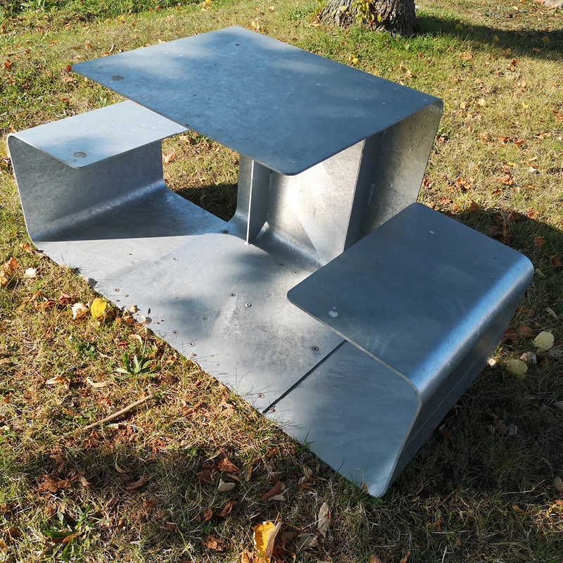 During ARCHITECT@WORK Kortrijk, the CIT N1 table bench, a seating piece for two people for both indoor and outdoor use, will be displayed at various locations. The steel piece consists of three shells and was designed by architect Niels Haelewyn of Geert Haelewyn Architectenbureau BV. The production by CITCIT is a tribute to Niels, who passed away in 2023.